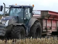 使用老式拖拉機翻麥地