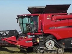 水稻田里的重型收割機(jī),480馬力主機(jī)+6.4米割臺+半履帶