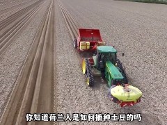 機械化播種土豆作業(yè),一次播種4行,一個小時播種40畝